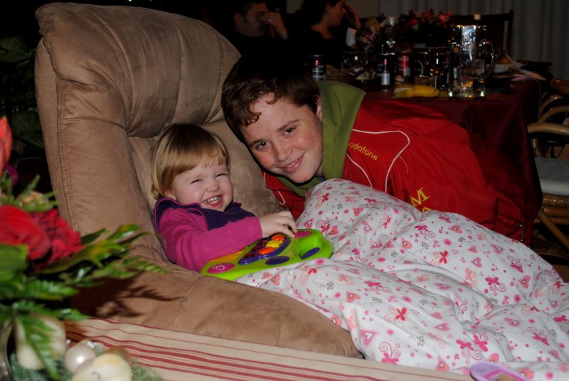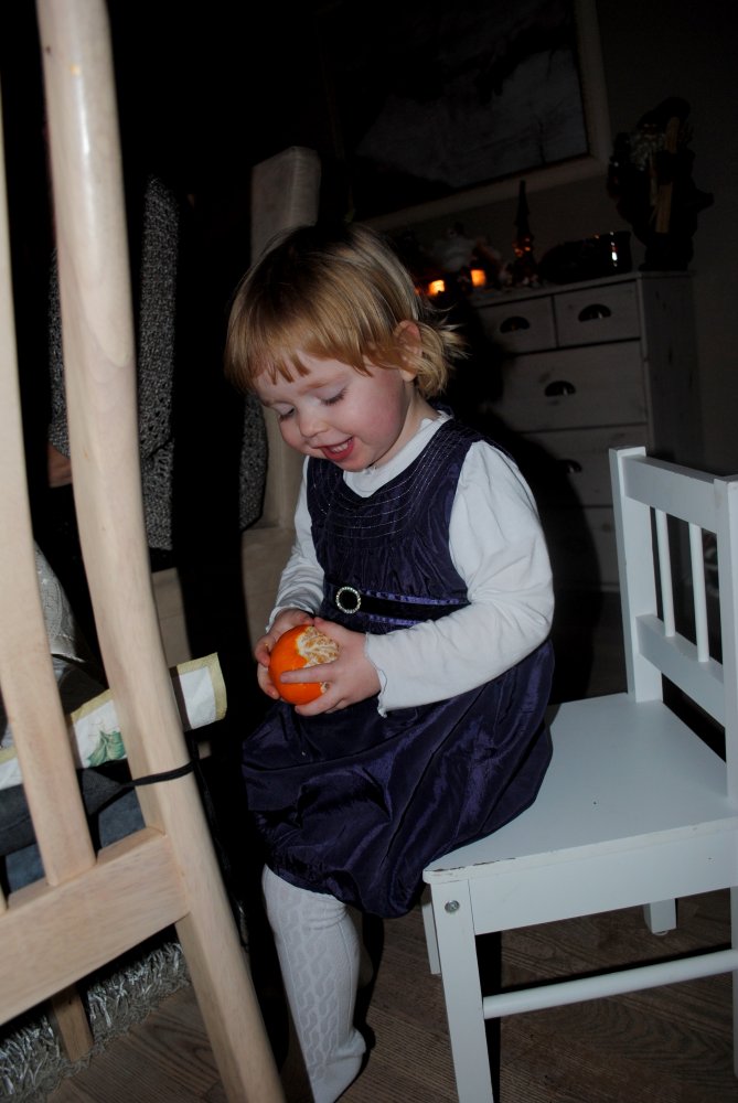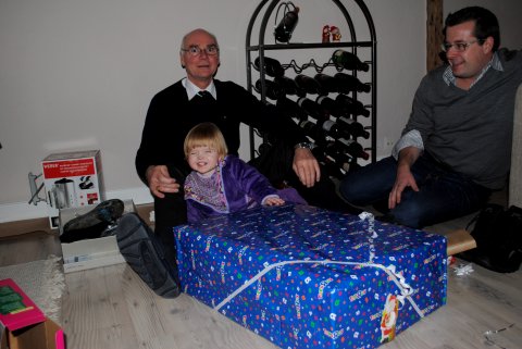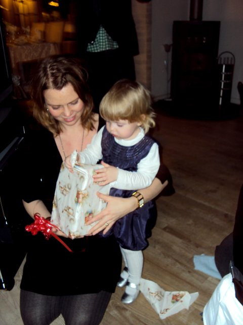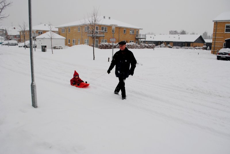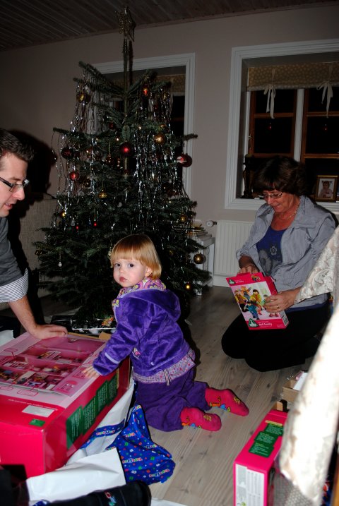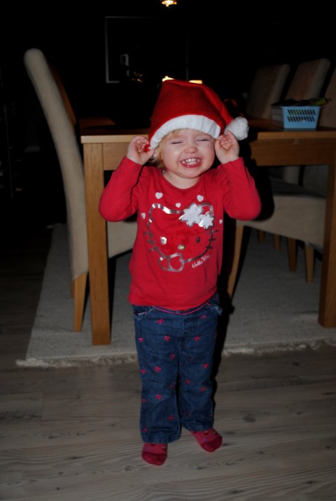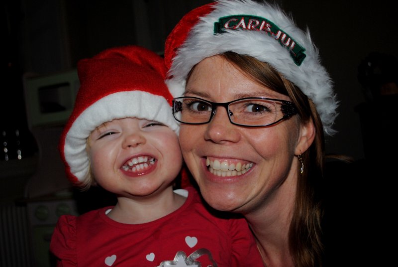 Det er sjovt at lege nisse  På kælketur med Morfar...wiiiiii :-)  Se, hvor er der meget sne.  Så er vi klar til julehygge :-)  Det er sjovt at danse rundt om det fine juletræ.  På loftet sidder nissen med sin julegrød.....  Se en fin pakke jeg har fået af julemanden.  Mums, den her clementin ser god ud.  Hygge med tante og Andreas og Michelle.  Det er hyggeligt at lege med Fredrik.  Det er sjovt at danse med Line.  Min nye dukkehus er rigtig fint.  Far har købt fine sikkerhedsbriller og ørepropper til mig.  Juhuuuu, jeg tumler med far.