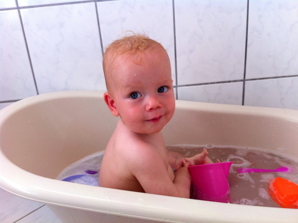 Det er sjovt at lege i badet.