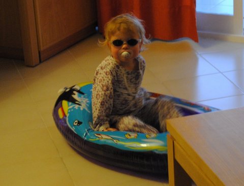 Vi er på Mallorca, Michelle giver en bådtur.  På restaurant med onkel og Michelle.  Sut, solbriller og gummibåd, så er jeg klar.  Wiii, det er en sjov rutscherbane.  Ihh, det er dejligt i poolen.  Farmor har fødselsdag...Hurra  La la la....jeg synger dejligt.